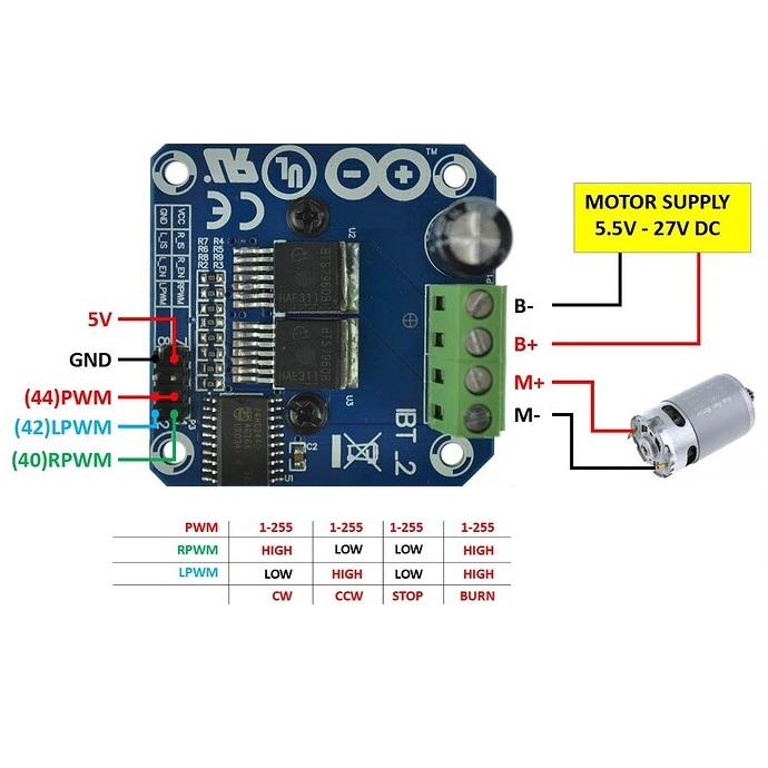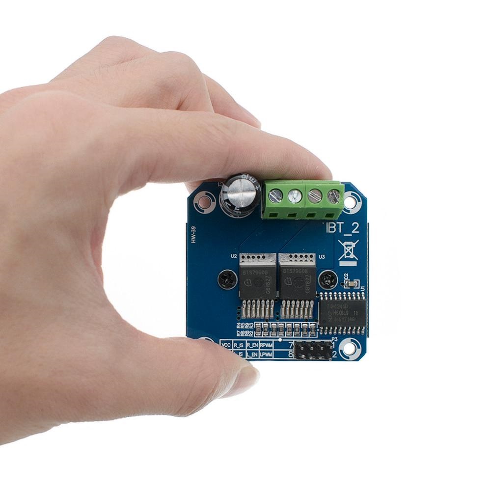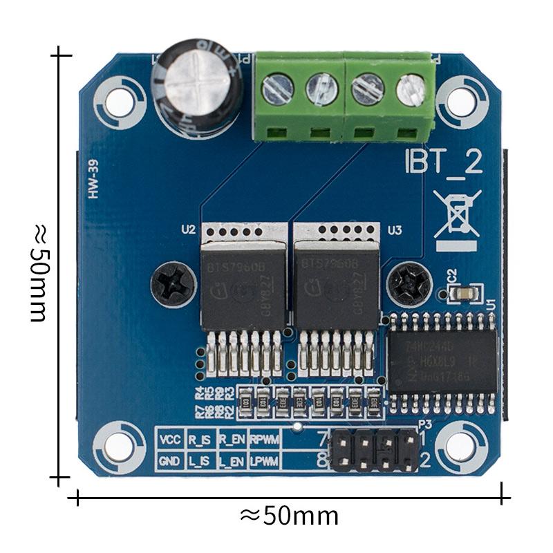 ماژول BTS7960 یک ماژول درایور موتور DC و متشکل از دو تراشه ی درایور پل H تحت عنوان BTS7960B است که به منظور درایو موتور به صورت ساعتگرد و پادساعتگرد و تنظیم سرعت موتور مورد استفاده قرار می گیرد. علاوه براین تغییر جهت موتور با استفاده از یک میکروکنترلر انجام می شود. از جمله ویژگی های این ماژول می توان به توان و جریان بالای آن اشاره نمود. به طوری که این ماژول با محدوده ولتاژ ورودی 6 تا 27 ولت، قابلیت تحمل جریان تا 43 آمپر را دارد. با توجه به تراشه ی به کار رفته در این ماژول، دارای حفاظت حرارتی و حفاظت در برابر اضافه جریان نیز می باشد. در این ماژول کنترل موتور به کمک PWM با ماکزیمم فرکانس 25 کیلوهرتز، سطح ولتاژ کنترل 3 تا 5 ولت و چرخه ی وظیفه ی 0 تا 100 درصد انجام می شود.