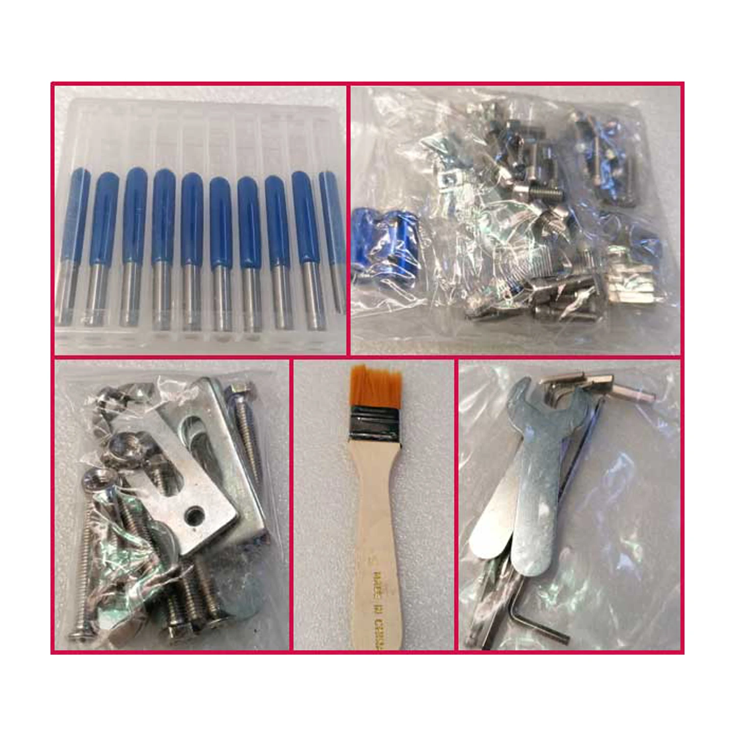 - اقلام همراه: آداپتور 24 ولت 5 آمپر، 5 عدد آچار آلن، DVD حاوی نرم افزار، ابزار حک و تراش، کابل اتصال به کامپیوتر و دفترچه راهنما