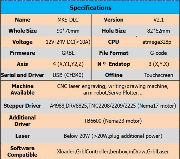 • نرم‌افزارهای سازگار: Xloader ،GrblController ،benbox ،mDraw، GrblLaser