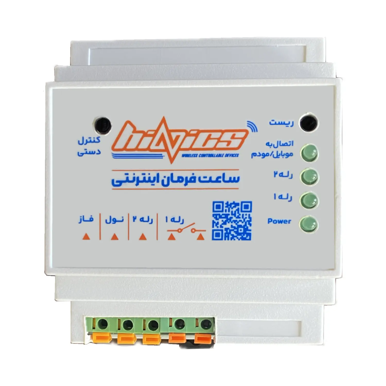 ویژگی های عمومی ساعت فرمان نجومی دو رله هفتگی قابلیت اتصال به اینترنت HINICS: ساعت فرمان اینترنتی هاینیکس دارای دو رله خروجی می باشد که به هر خروجی می توان 50 برنامه جداگانه برای زمان قطع و وصل شدن اختصاص داد. از ویژگی های منحصر به فرد این محصول امکان تعریف اوقات هفتگی و نجومی برای هر خروجی به صورت ترکیبی و رابط کاربری بسیار راحت از طریق نرم افزار اندروید (قابل نصب از سایت هاینیکس و کافه بازار) می باشد.ویژگی های اختصاصی: ساعت فرمان اینترنتی هاینیکس با قابلیت کنترل از راه دور وسیله ی برقی، مناسب مکان هایی ست که مودم اینترنت وجود داشته باشد. در این صورت به راحتی به کمک پنل اینترنتی اختصاصی تنظیمات و منوهای هر تعداد ساعت فرمان دلخواه در تلفن همراه قابل مشاهده و ویرایش می باشد.در صورتی که نیاز به کنترل از راه دور وجود دارد اما مودم اینترنت در دسترس نیست، مدل سیم کارتی پیشنهاد می شود.