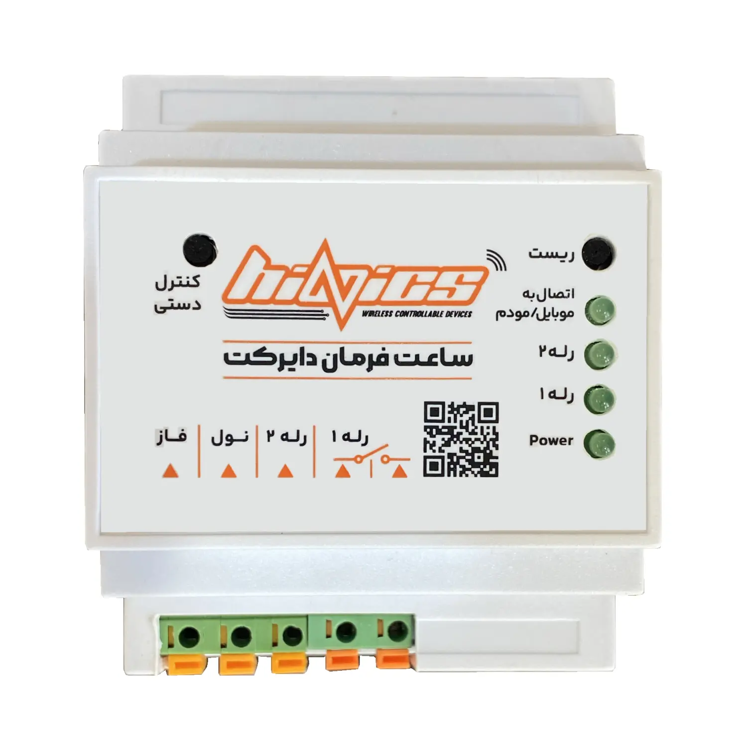 ویژگی های عمومی ساعت فرمان دایرکت نجومی دو رله هفتگی با قابلیت اتصال به وای فای HINICS: ساعت فرمان دایرکت هاینیکس دارای دو رله خروجی می باشد که به هر خروجی می توان 50 برنامه جداگانه برای زمان قطع و وصل شدن اختصاص داد. از ویژگی های منحصر به فرد این محصول امکان تعریف اوقات هفتگی و نجومی برای هر خروجی به صورت ترکیبی و رابط کاربری بسیار راحت از طریق نرم افزار اندروید (قابل نصب از سایت هاینیکس و کافه بازار) می باشد.به کمک این ساعت فرمان نیازی به باز کردن درب تابلو برق برای تغییر تنظیمات نمی باشد و از فاصله ی 30 متری تمامی منوهای دستگاه بر روی تلفن همراه قابل مشاهده و ویرایش می باشد.ویژگی های اختصاصی: از کاربردهای این مدل ساعت فرمان می توان به استفاده در سیستم سرمایش و گرمایش منازل، تابلوهای فروشگاهی، آبنما در فضاهای شهری، آبیاری زمین های کشاورزی و صنایع اشاره کرد.محدودیت ساعت فرمان دایرکت هاینیکس: عدم امکان کنترل از فاصله ی بالای 30 متر و عدم امکان اتصال به اینترنت و کنترل از راه دور می باشد. اگر تنها به زمان بندی خاموش و روشن شدن وسیله ی برقی مورد نظر نیاز دارید و قصد دارید تمامی برنامه ها بدون نیاز به بروشور و راهنما به راحتی در موبایل شما قابل مشاهده باشد و نیازی به کنترل از راه دور ندارید بهترین انتخاب ساعت فرمان، مدل دایرکت هاینیکس می باشد.در صورت نیاز به کنترل از راه دور دو مدل دیگر اینترنتی و سیم کارتی را بررسی نمایید.