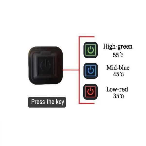 🔹 دارای سه سطح تنظیم دما (کم – متوسط – زیاد) با چراغ LED رنگی