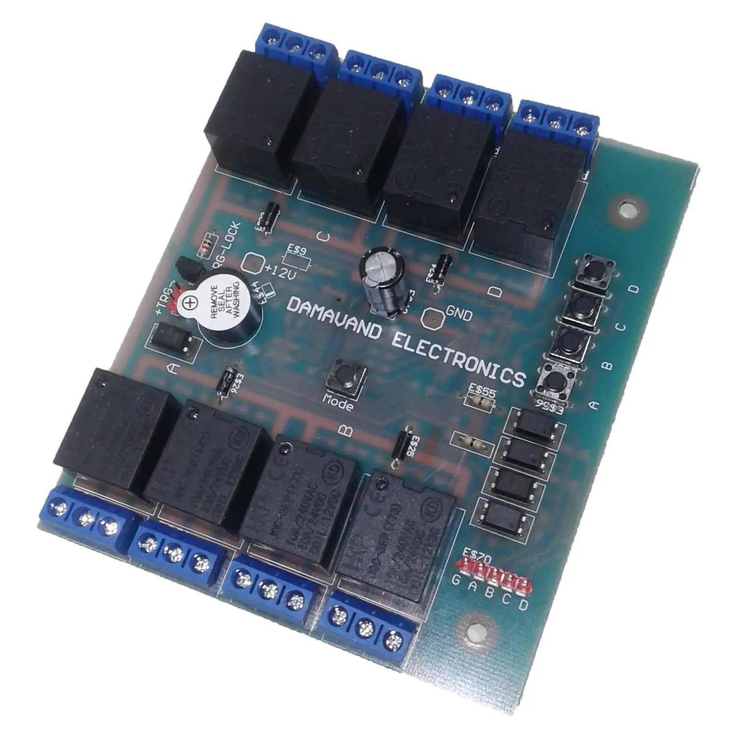 این ماژول مجهز به چهار کانال مستقل، هر یک با دو رله، طراحی شده است.