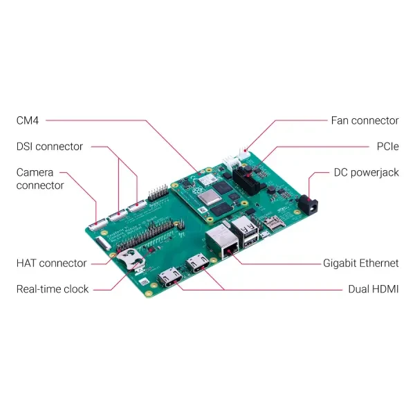 برد توسعه رسمی Raspberry Pi Compute Module 4 IO Board یک پلتفرم جامع و مرجع برای توسعه و آزمایش پروژه‌ها با ماژول محاسبه‌گر Raspberry Pi Compute Module 4 است. این برد با ارائه تمامی رابط‌ها و اتصالات ضروری، امکان طراحی و پیاده‌سازی کاربردهای متنوع را به ساده‌ترین شکل فراهم می‌کند.