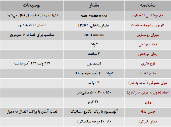 این چراغ اضطراری برای استفاده در فضاهایی مانند انبار، راهپله، پارکینگ، راهرو، مشاعات و اتاقهایی با مساحت حداکثر ۹ متر مربع گزینهای ایدهآل محسوب میشود.