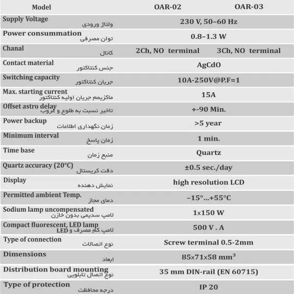 ساعت فرمان OAR-02 اوژن الکترونیک، محصولی دانشبنیان با قابلیت برنامهریزی مجزا برای هر فاز بوده و دارای ویژگیها و امکانات زیر میباشد: