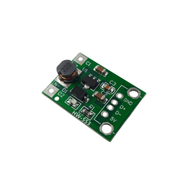 این ماژول یک مبدل DC-DC افزاینده (BOOST) است که می تواند در ورودی خود ولتاژ DC از 0.9 ولت الی 5 ولت دریافت کند و در خروجی یک ولتاژ 5 ولت رگوله شده و ثابت ایجاد کند. جریان خروجی این ماژول در بازه ی 500 الی 600 میلی آمپر است و در خروجی یک کانکتور USB مادگی قرار داده شده است. بوسیله این ماژول و فقط یک باتری می توان برای تلفن همراه بدون نیاز به برق شهر یک شارژر ساخت یا اینکه از آن برای هر وسیله ای که تغذیه 5 ولت دارد استفاده کرد . به این صورت که کافیست IN+ به مثبت باتری و IN- به منفی باتری متصل شود حال با اتصال یک کابل شارژ گوشی های اندرویدی به خروجی میتوان از آن به عنوان شارژر استفاده کرد . مشخصات فنی :