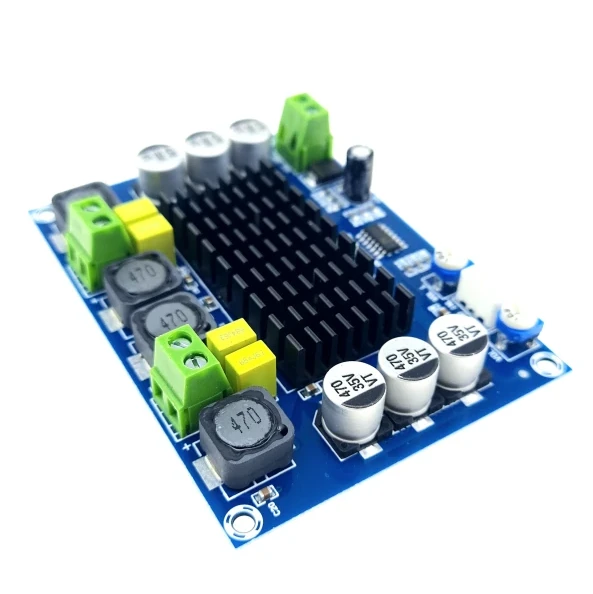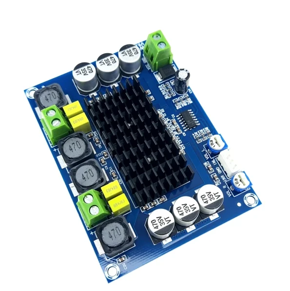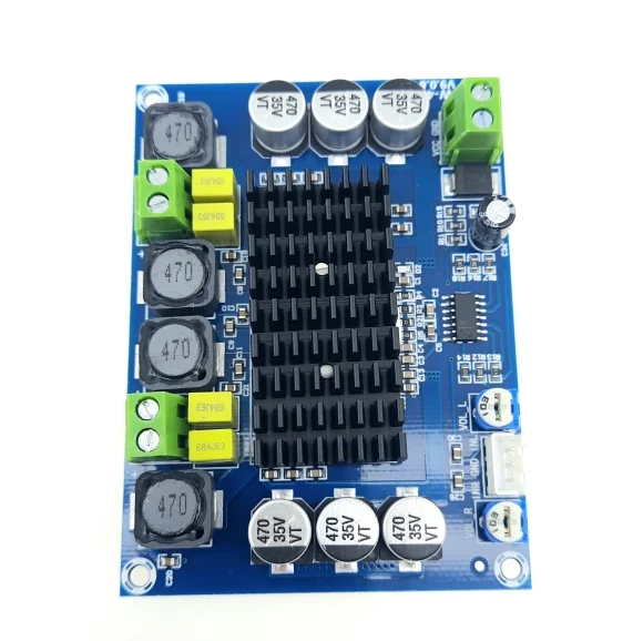 ماژول آمپلی فایر 120 وات دو کانال TPA3116D2 یک محصول محبوب و پرکاربرد برای تقویت و پخش صدا می باشد. این آمپلی فایر صوتی دارای دو کانال خروجی جهت پخش صدا بوده، که توان هر کانال از 50 تا 120 وات متغیر است و قادر به پخش صدای استریو در کلاس D می باشد. در قسمت ورودی این ماژول، یک کانکتور سه پین برای اتصال پخش کننده ی صوتی، یک ترمینال 2 پین جهت اتصال تغذیه ی 12 تا 24 ولت ماژول و دو عدد پتانسیومتر جهت تغییر میزان تقویت شوندگی صدای ورودی برای هر کانال قرار دارد و قسمت خروجی ماژول نیز دارای دو ترمینال 2 پین، برای اتصال بلندگو های خروجی می باشد. ولتاژ تغذیه ی این آمپلی فایر از 12 تا 24 ولت متغیر است، اگر از ولتاژ 12 ولت برای تغذیه ماژول استفاده کنید، توان خروجی هر کانال، حداکثر به 50 وات می رسد و اگر می خواهید به ماکزیمم توان 120 وات دست یابید، می بایست از ولتاژ 24 ولت برای تغذیه ی ماژول استفاده نمایید. البته بهتر است همواره از ولتاژ 24 ولت برای تغذیه ی ماژول استفاده کنید و توان خروجی مورد نظر برای هر کانال را با استفاده از پتانسیومتر های موجود بر روی برد تنظیم نمایید. از این ماژول می توانید در طراحی و ساخت انواع سیستم های صوتی در خودروها، اعلام نوبت در بانک ها و پخش تبلیغات در مکان های تجاری بهره گیری نمایید.
