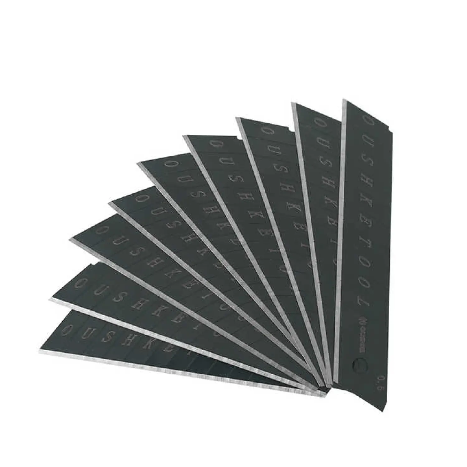 تیغ یدکی کاتر مارک Oushke مدل Art Knife Blade ● بسیار محکم و تیز ● طول ۱۱۰ میلیمتر ● پهنا ۱۸ میلیمتر ● ضخامت ۰/۶ میلیمتر ● دارای خط شکست ۱۰ قسمتی (استفاده مفید و طولانی تر) ● بسته بندی ۱۰ عددی
