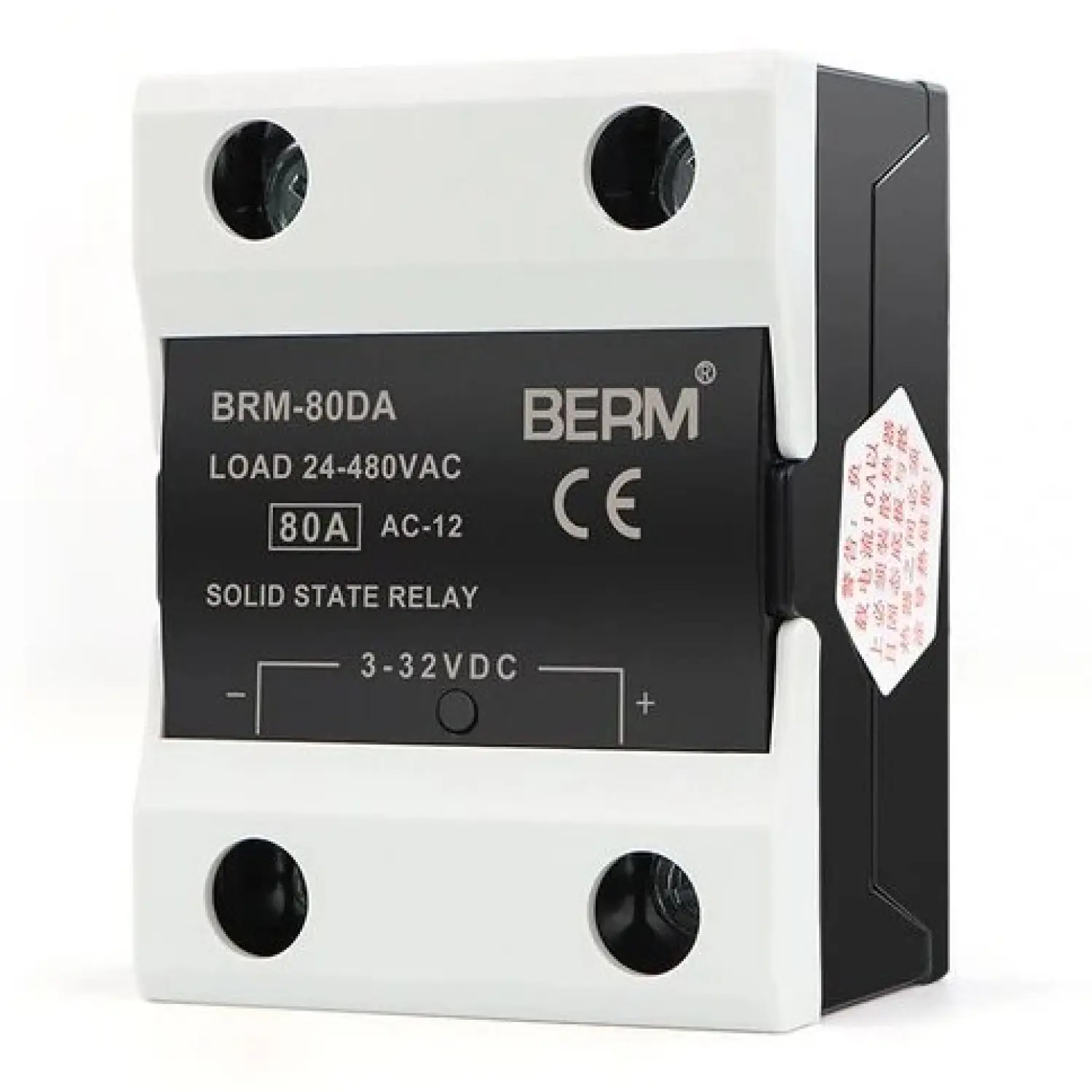 رله حالت جامد تکفاز BERM مدل BRM-80DA با ظرفیت ۸۰ آمپر و ولتاژ خروجی تا ۴۸۰ ولت AC، گزینهای مطمئن و بدون نویز برای کنترل بارهای صنعتی با سرعت سوئیچینگ بالا و عمر طولانی است.