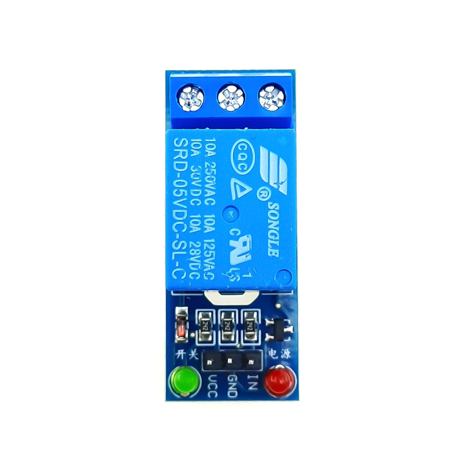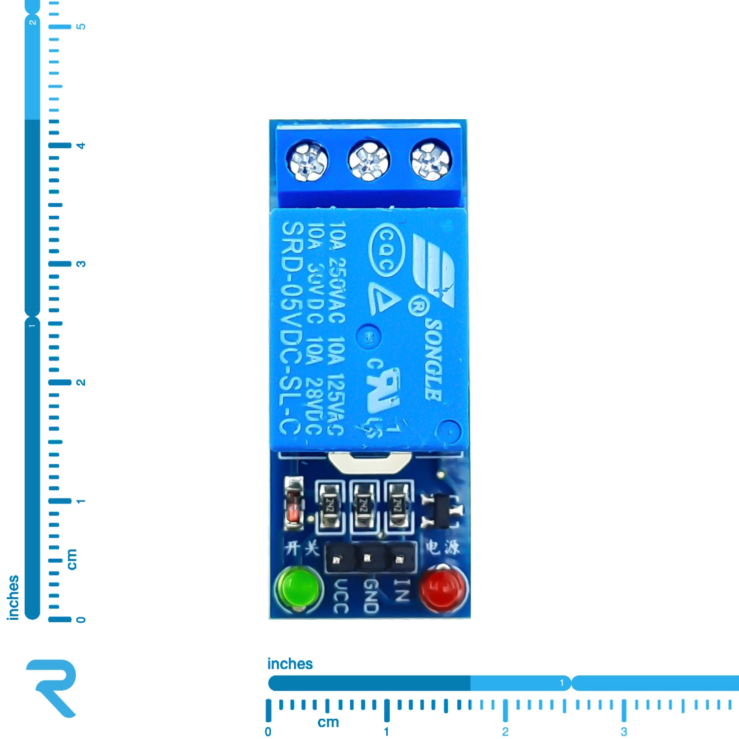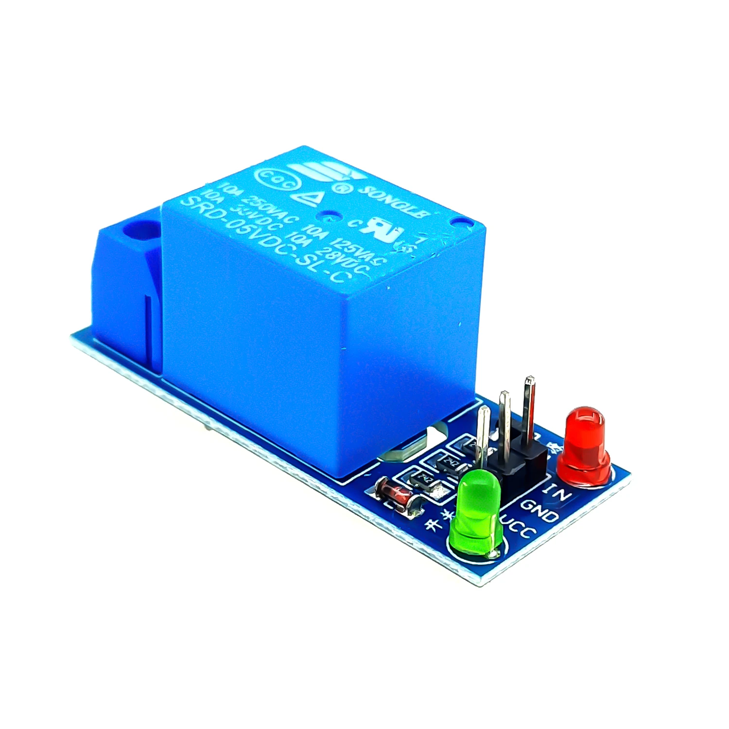 این محصول یک ماژول رله 5 ولت 1 کانال است که بر روی آن از 1 رله ی 5 ولت با کیفیت استفاده شده و با آردوینو و همچنین انواع میکرو کنترلر ها سازگاری دارد و بوسیله آن می توان انواع مصرف کننده های برقی AC را تا ولتاژ 250 ولت و جریان 10 آمپر و مصرف کننده های DC را تا 30 ولت 10 آمپر به راحتی کنترل کرد . برای اینکه هنگام اتصال به میکرو کنترلر نویز ایجاد شده توسط رله بر روی عملکرد میکرو تاثیر نگذارد، هر کانال توسط یک اپتوکوپلر ایزوله شده است. برای هر کانال نیز یک کانکتور پیچی بر روی برد قرار داده شده که به وسیله آن تمام پایه های رله (NO-NC-COM) در دسترس هستند، همچنین برای هر کانال یک ال ای دی نشانگر قرمز رنگ قرار داده شده که با وصل هر کانال روشن می شوند .