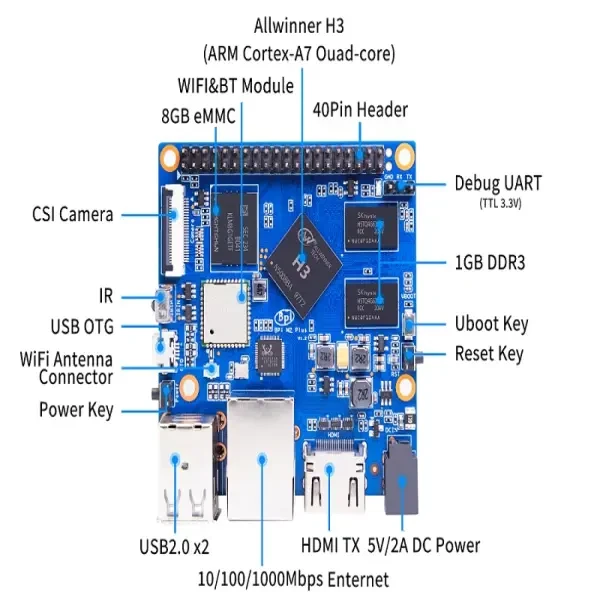 پردازنده: Allwinner H3، چهار هسته‌ای Cortex-A7 با فرکانس بالا