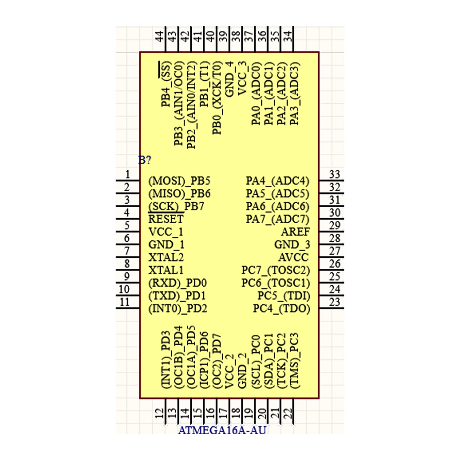 میکروکنترلر ATMEGA16A پکیج SMD، یک میکروکنترلر 8 بیتی CMOS بر پایه معماری RISC AVR است. این میکرو، قطعهای 44 پایه با 16KB حافظه فلش برنامه، 1KB حافظه SRAM و 0.5KB حافظه EEPROM میباشد. پردازنده آی سی ATMEGA16A هر دستور را در یک سیکل کلاک اجرا میکند و به ازای هر یک مگاهرتز فرکانس کاری به توان عملیاتی یک میلیون دستور در ثانیه (MIPS) میرسد. هسته AVR از معماری دستورات کاملی برخوردار است که با 32 رجیستر 8 بیت همه منظوره (General Purpose) کار میکنند. این رجیسترها مستقیما به واحد عملیات ریاضی و منطقی (ALU) ارتباط دارند که اجازه دسترسی به دو رجیستر در یک سیکل کلاک را فراهم میکند. این نحوه طراحی تا 10 برابر توان عملیاتی بهتری نسبت به میکروکنترلرهای CISC خواهد داشت. برنامهنویسی برای میکروکنترلر ATMEGA16A SMD در محیطهای مختلفی نظیر CODEVISION AVR، ATMEL STUDIO، Arduino IDE و ... امکانپذیر است. برای پروگرام کردن یا دیباگ این میکرو نیز رابط JTAG پیشبینی شده و همچنین برای برنامهریزی حافظه فلش از طریق فلش ISP داخلی، میتوان از رابط سریال SPI استفاده کرد. این میکروکنترلر مانند به علت سهولت استفاده و برنامهنویسی، همچنین دارا بودن قابلیتهای مناسب از محبوبیت زیادی برخوردار است.