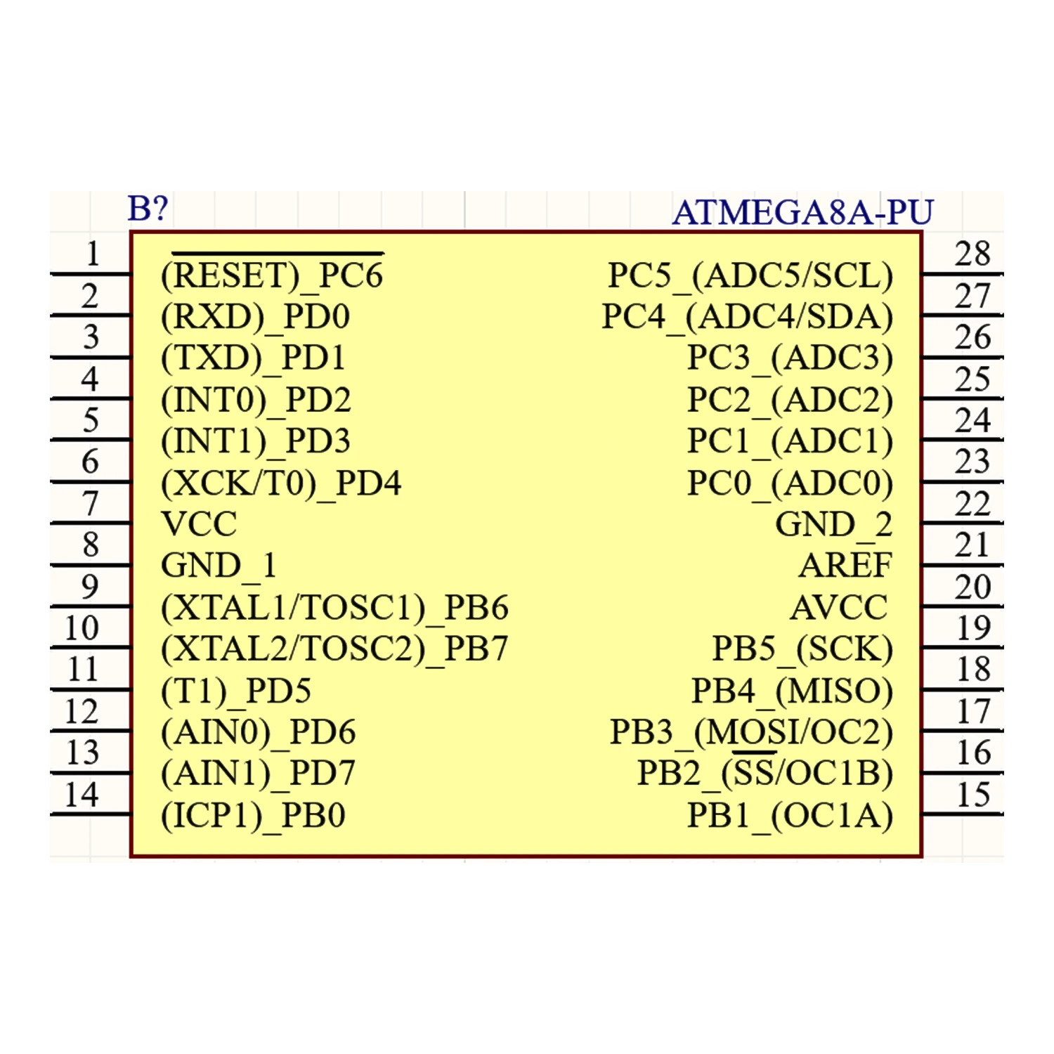 با مراجعه به دیتاشیت میکروکنترلر ATmega8A-PU بخشهای اصلی آن قابل مشاهده است که عبارتند از: پردازنده اصلی واحد ADC، واحدهای تایمر/شمارنده و اسیلاتور، واحد وقفه، واحدهای ارتباطی SPI، USART و TWI و واحد مقایسه کننده.