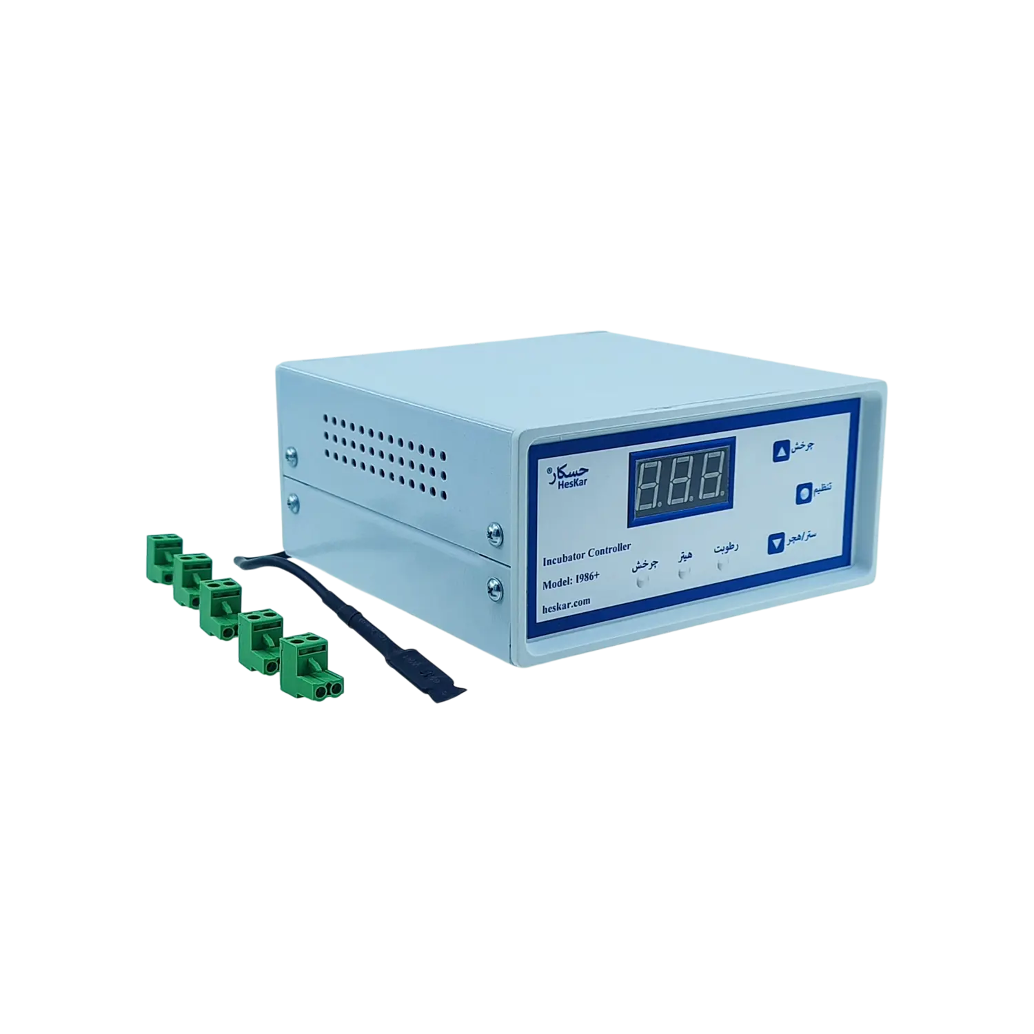 این کنترلر مخصوص دستگاههای جوجهکشی کوچک و متوسط طراحی شده و قادر است دمای محیط، رطوبت و چرخش راکها را کنترل کند، با پشتیبانی از موتورهای تکجهته.
