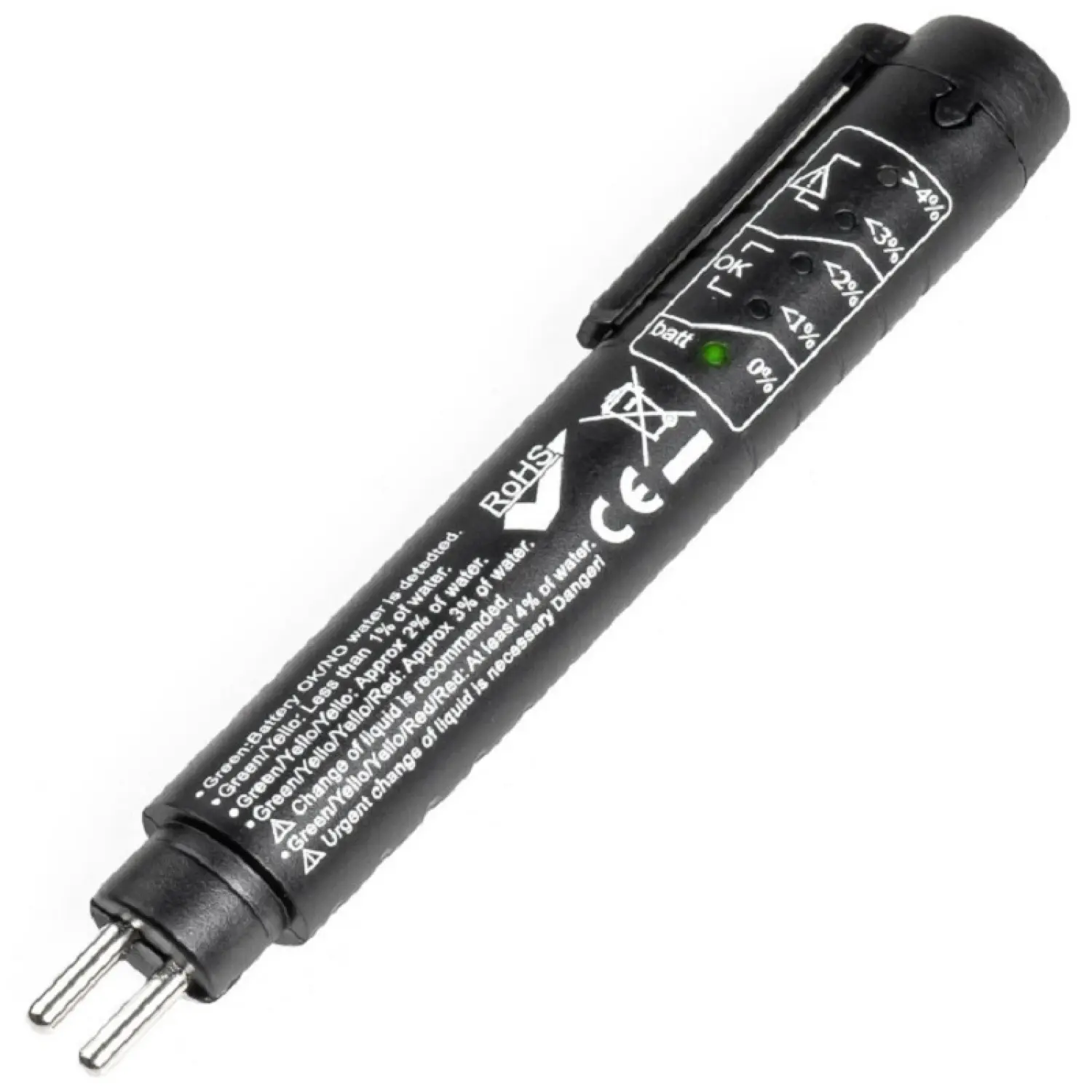 تستر رطوبت روغن خودرو به شکل یک قلم کوچک طراحی شده است. کافیست دستگاه را در مخزن روغن ترمز قرار دهید؛