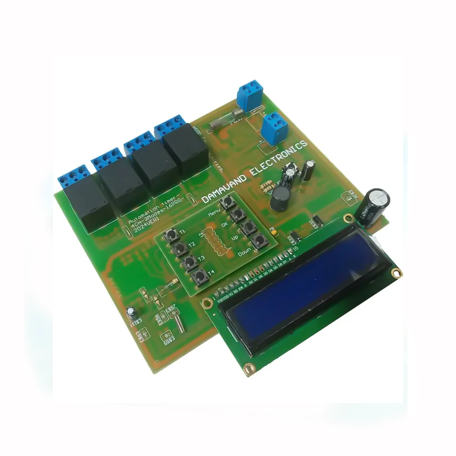 این دستگاه دارای 4 کانال مستقل است که برای هر کانال دو برنامه روشن و دو برنامه خاموش قابل تنظیم میباشد. این برنامهها قابلیت تنظیم به صورت روزانه، هفتگی یا ماهانه را دارند، به این معنا که میتوان برای هر روز هفته، روز خاصی مانند دوشنبهها، یا حتی یک روز خاص از هر ماه (مثلاً 22 هر ماه) تنظیم کرد. دستگاه همچنین مجهز به سیستم نمایش تاریخ شمسی، ساعت و روز هفته است. برای اطمینان از عملکرد مداوم در زمان قطعی برق، این سیستم امکان اتصال به یک باتری 12 ولت از نوع sealed lead acid با ظرفیت 5 تا 7 آمپرساعت را دارد که به عنوان باتری پشتیبان عمل کرده و مدار و رلهها را روشن نگه میدارد. علاوه بر این، دستگاه دارای یک مدار شارژ خودکار است که در صورت نیاز به شارژ، به طور خودکار فعال شده و پس از شارژ کامل باتری، به طور خودکار قطع میشود. ورودی دستگاه از نوع 12 ولت با جریان 2 آمپر سوئیچینگ است که بدون نیاز به ترانس 12 ولت عمل میکند و به کمک مدار داخلی افزاینده ولتاژ، ولتاژ را از 12 ولت به 14.5 ولت تبدیل میکند تا همواره نیازهای سیستم تأمین شود.