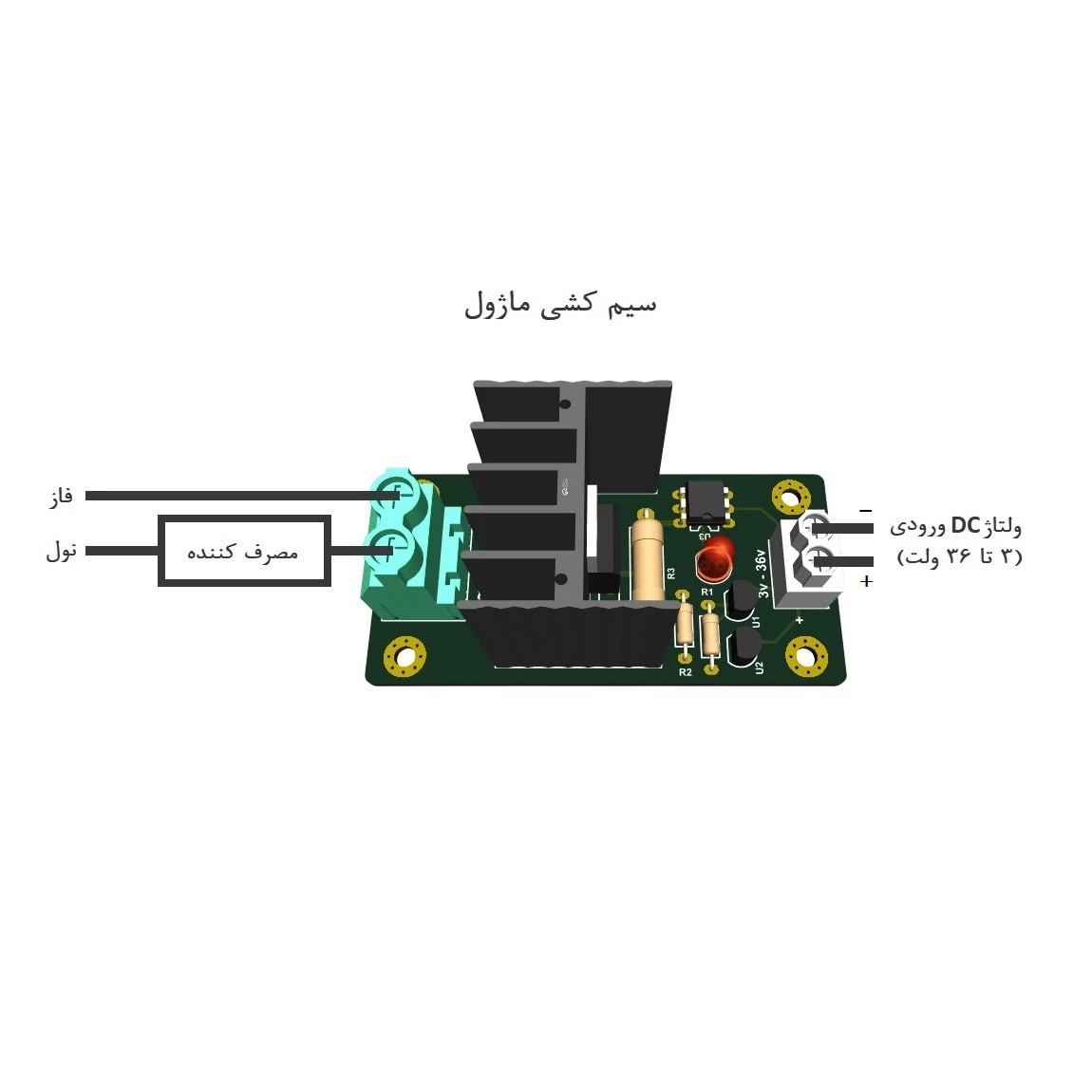 توجه: به دلیل استفاده از اپتوترایاک نوع Zero Crossing، این ماژول تنها برای قطع و وصل مصرف‌کننده مناسب است و امکان کنترل توان خروجی (مانند دیم کردن) را ندارد.