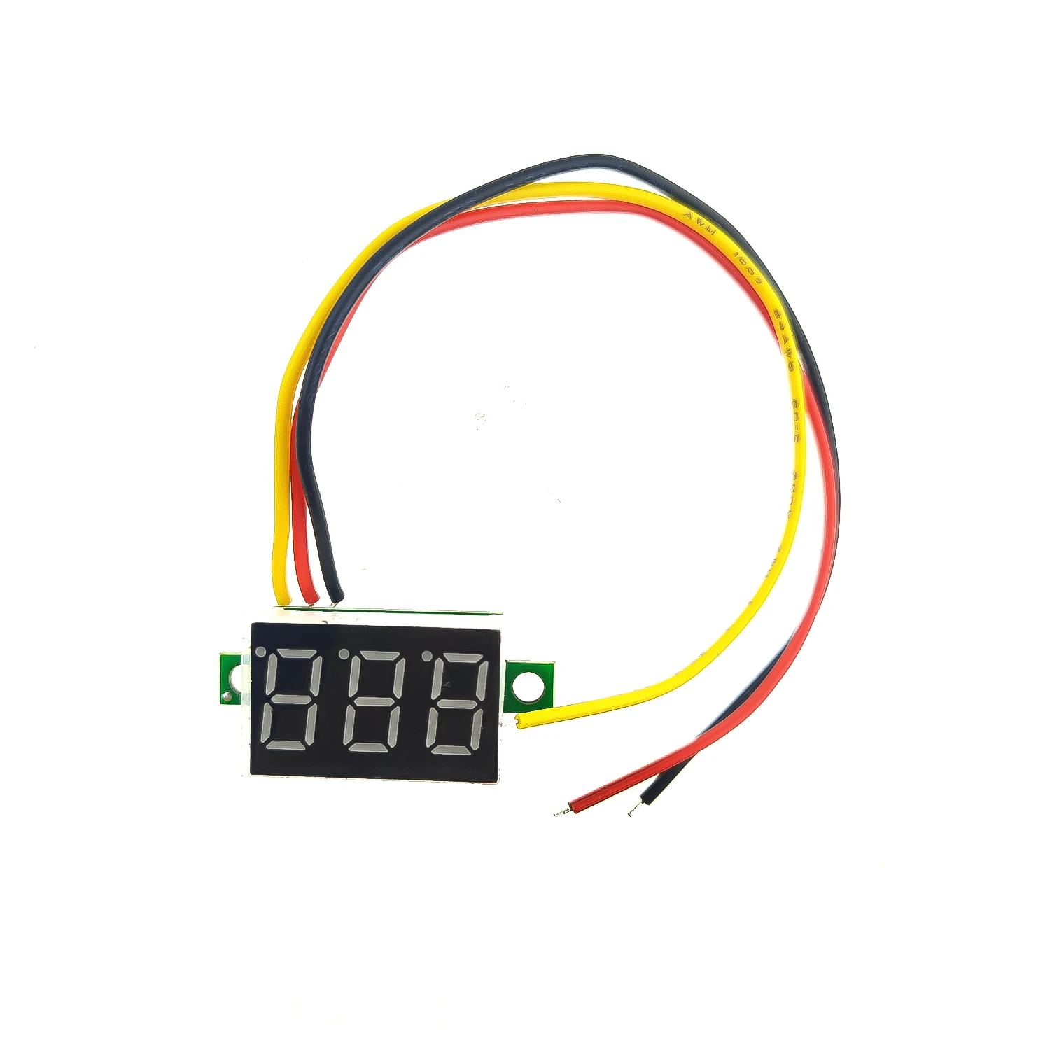 ماژول ولت متر پنلی 0 تا 100 ولت DC سه سیمه 0.36 اینچ قرمز، یک ابزار اندازهگیری است که جهت اندازه گیری و نمایش ولتاژ الکتریکی بهصورت دقیق و قابل فهم استفاده میشود. ماژول ولت متر dc دارای صفحه نمایش سون سگمنت 3 رقمی قرمز رنگ بوده و قابلیت اندازهگیری ولتاژ DC در بازه 0 الی 100 ولت با دقت یک ولت را دارد. با توجه به اینکه نمایشگر این ولت متر پنلی سه رقمی است، میتواند اعداد را از 0 تا 999 نمایش دهد. اگر ولتاژ زیر 10 ولت باشد، دقت اندازهگیری تا دو رقم اعشار اعمال میشود و اگر بیشتر از 10 ولت باشد، دقت اندازهگیری به یک رقم اعشار کاهش مییابد. این محصول دارای سه سیم قرمز (مثبت)، زرد (اندازهگیری) و مشکی (منفی) میباشد. برای راه اندازی ماژول، به یک منبع تغذیه با ولتاژ 4 الی 30 ولت نیاز دارید. سیم قرمز به پلاریته مثبت منبع تغذیه، سیم زرد به پلاریته مثبت منبع مورد اندازهگیری و سیم مشکی به پایههای منفی منبع تغذیه و منبع مورد اندازهگیری وصل میشود. در واقع اگر منبع تغذیه و منبع مورد اندازهگیری جدا باشند، سیم مشکی بین هر دو مشترک خواهد بود. این موارد باید با دقت و صحیح انجام شوند تا ماژول بهطور صحیح عمل کند و اندازهگیری دقیقی انجام شود. از ماژول ولت متر بههمراه نمایشگر دیجیتال 0 تا 100 ولت dc، برای نمایش لحظه به لحظه ولتاژ در دستگاههای مختلف مانند منابع ولتاژ یا مانیتور کردن ولتاژ باتریها، کاربردهای کنترلی و صنعتی استفاده میشود، همینطور میتواند به تعیین ولتاژ باتری، تست ولتاژ در دستگاههای ذخیره بار، بررسی ولتاژ در لوازم برقی، بررسی وضعیت خروجی ولتاژ رلهها و نمایش ولتاژ در تابلوهای برق کمک کند.